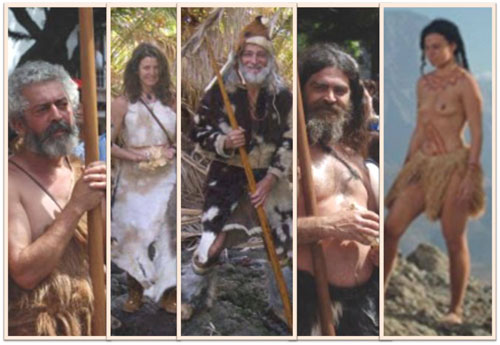 | Galería de guanches en distintas escenas y fotografías de recreación (elaboración de GEVIC). |