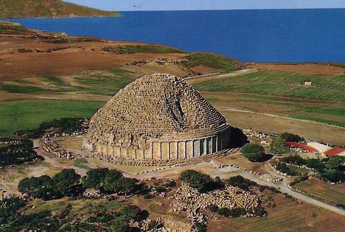 | Mausoleo del Rey Juba II y de su mujer, Cleopatra Selene, hija de la famosa Cleopatra alejandrina y Marco Antonio. El Reino de Mauritania termina con el reinado de su hijo Ptolomeo (23-40 d.C.), vilmente asesinado por Calígula, irritado por considerarlo arrogante al haberse presentado ante él con un manto de púrpura.