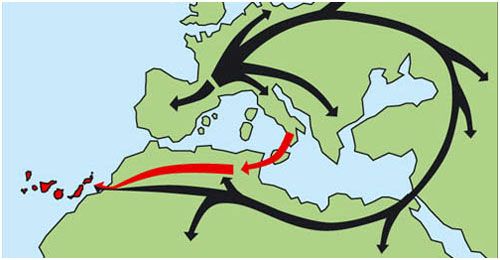 ORIGEN: La teoría más aceptada es que los antiguos canarios procedían del territorio noroccidental del continente africano.