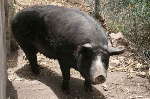 | COCHINO NEGRO CANARIO. El Cochino Negro Canario es la �nica raza porcina aut�ctona del Archipi�lago y, en la actualidad, la mayor parte de los ejemplares se encuentra en las islas de Tenerife y Gran Canaria(MC) |