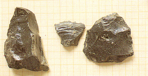 LASCAS DE OBSIDIANA. Es muy negra, brillante, de tipo vidrioso y con reflejos metálicos. En Tenerife es donde más se utilizaba. En Gran Canaria, se desarrolló una mina en la montaña de Hogarzales (Aldea de San Nicolás). |