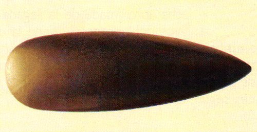 PIEZA ERRONEA. Durante mucho tiempo, se consideró que esta hacha de piedra pulimentada neolítica, pertenecía al ámbito cultural canario. Sin embargo, se ha señalado que tiene una procedencia diferente (Puerto Rico). |