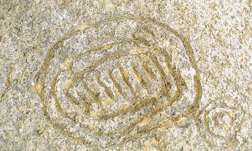 | Símbolos grabados en el techo de la Cueva de Tajodeje, Caldera de Taburiente, La Palma. (ER) |