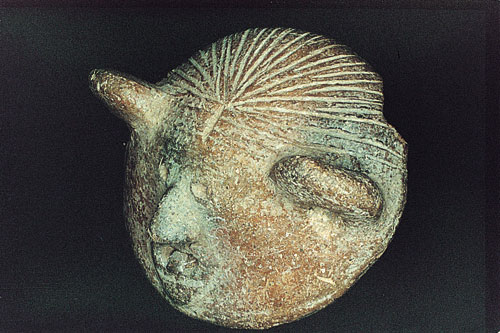 | Tapa antropomorfa en barro cocido. Guayedra, Agaete, Gran Canaria. M.C. |
