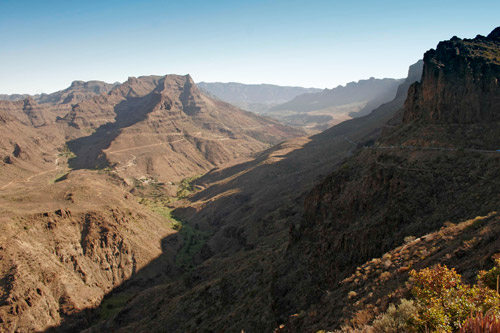 Los barrancos, como el de Fataga, Mogán, Veneguera, Tirajana o Arguineguín. Son grandes cauces excavados a lo largo de miles de años por la actividad erosiva de las aguas de la lluvia. El de Fataga, por ejemplo, presenta la peculiaridad de no tener cabecera y se forma a continuación de la caldera de Tirajana. El barranco de Arguineguín es el de mayor longitud de la Isla, desde el valle de Ayacata hasta el estuario que forma en Arguineguín. A lo largo de su cauce se pueden observar grandes escarpes, como el del Montañón, de 1600 m. El barranco de Mogán, por su parte, es uno de los grandes cursos de la Isla, al que se le une el afluente de El Mulato. Sobre todo en la parte alta del cauce, las paredes que forman las vertientes presentan grandes escarpes, como a su paso por la Montaña de Tauro, de 1218 m. Termina en la playa de Mogán.