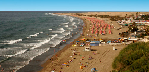 | La costa de San Bartolomé de Tirajana es más llana que la de Mogán, apareciendo acumulaciones arenosas como Playa del Inglés y Maspalomas. (MC) |