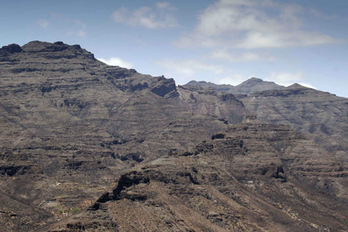 | Barranco de Tasarte, donde se aprecia la fina línea que la culmina, denominada cresterías de La Aldea. (MC) |