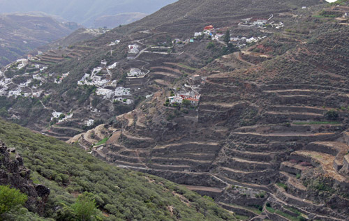 | Pese a su accidentada topografía, el hombre ha sabido acondicionar el terreno para el desarrollo de la agricultura. (TB) |