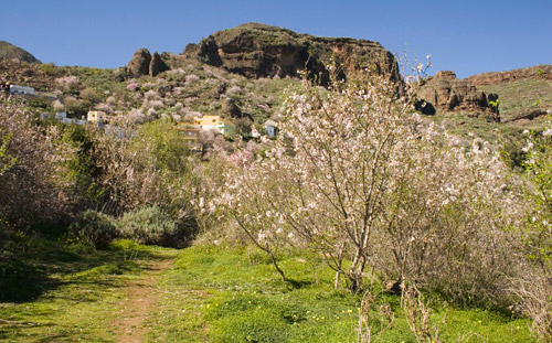 | A pesar del retroceso de la actividad agrícola, el almendro caracteriza el paisaje de Tejeda y es una fuente de ingresos importante para el municipio. (MC) |