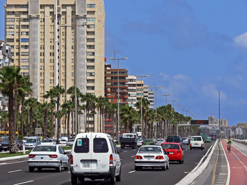 GC-1 es el principal eje insular, comunica Las Palmas de Gran Canaria con la zona turística del Sur a través del litoral suroriental.