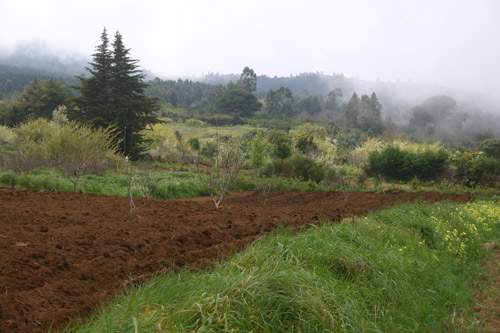 b) Una zona de medianías, húmeda, afectada por el mar de nubes del alisio, de temperaturas suaves y mayores precipitaciones que en las restantes áreas. Estas características han contribuido al desarrollo agrícola de la zona.