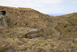 Los apilamientos de pumitas, los cuales destacan por su color blanquecino, junto con las coladas basálticas, y los conos cinder, de aspecto más oscuro, se alternan con un número destacado de barrancos. Los barrancos, de largo recorrido y gran profundidad, tienen su nacimiento en la línea de cumbres que parte del borde meridional de Las Cañadas y en ocasiones llevan caudal como consecuencia de fuertes precipitaciones. En este sentido destacan el Barranco del Río, el Barranco de la Orchilla o el Barranco de Herques.