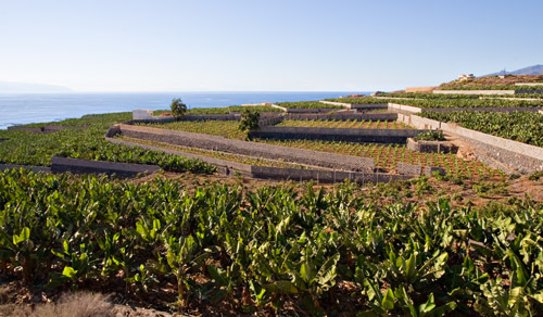 | Gracias a la construcción de canales de regadío para traer agua de otras zonas de la isla, se han podido desarrollar cultivos como el plátano. (DM) |