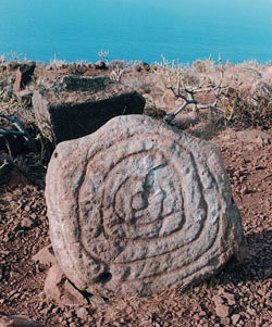 | Existen estelas que utilizan el motivo de los círculos concéntricos. Garafía, La Palma. (AGF) |