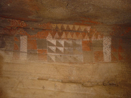 | Detalle de las pinturas de la Cueva Pintada de Gáldar, Gran Canaria. (MPACP) |