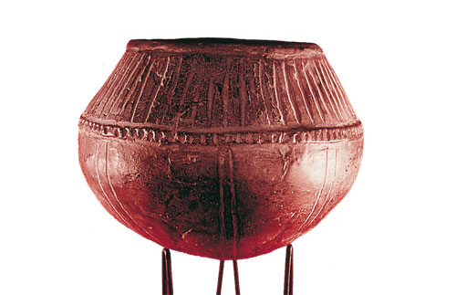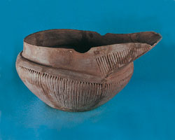 | Recipiente cerámico compuesto con decoración geométrica. Túmulo del Agujero, Gáldar. (MCA) |