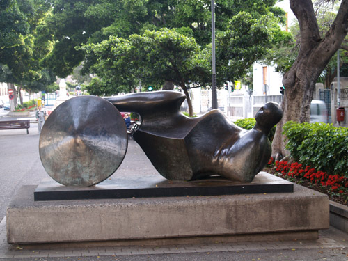 | ‘El Guerrero de Goslar’ de Henry Moore. Se encuentra en las Ramblas de Santa Cruz de Tenerife, y es una de las esculturas realizadas con motivo de la Exposición Internacional de Escultura en la calle de 1973. (DL) |