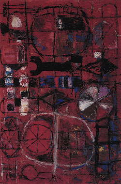 Manolo Millares (Las Palmas de Gran Canaria, 1926; Madrid, 1972). Atento a la injusticia y desesperación de su tiempo, intenta coser en sus cuadros las heridas producidas por tales situaciones. Busca un material pobre (harapos, sacos, entre otras cosas) y unos colores tristes y al mismo tiempo denunciantes como el negro y el rojo. Aparecen también el blanco y el rosa. Todos estos materiales se combinan en un alarde de monstruosa belleza.