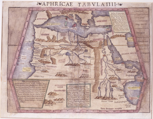 Mapa atribuido a Sebastián Munster, 1550, realizado según las interpretaciones de Ptolomeo en el siglo II d.C. (MHT)