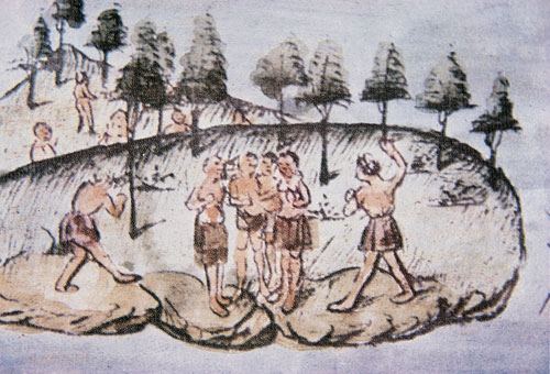 | Escena que representa aspectos del mundo aborigen. |