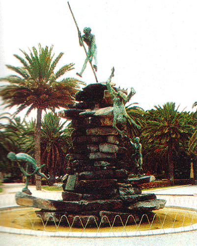 Monumento en representación del despeñamiento de Bentejuí, obra de Manuel de Bethencourt. Parque Doramas, Las Palmas de Gran Canaria. (DS) |