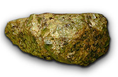 El olivino de color verdoso es un mineral que se halla normalmente en los basaltos. |