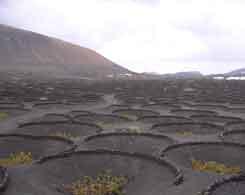 En lugares a priori poco favorables para la agricultura, como pueden ser los enarenados naturales producto de erupciones recientes, se consiguen excelentes caldos. La Geria, Lanzarote. (FT) |