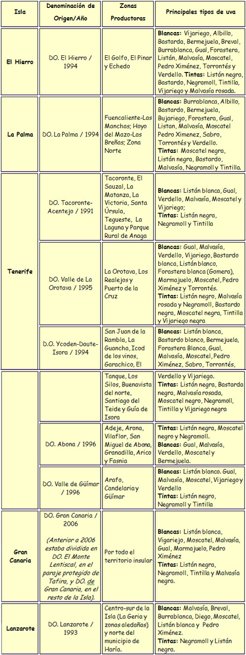 Alrededor del cultivo de la vid, y de su producto final, el vino, se ha organizado toda una cultura en las Islas, especialmente en zonas como el norte de Tenerife. La vendimia, entre agosto y septiembre, se convierte en muchas ocasiones en todo un acontecimiento social del mundo rural. Además, a finales de noviembre, la apertura de las bodegas para degustar el vino nuevo se traduce en muchos pueblos en fiestas de gran arraigo popular.