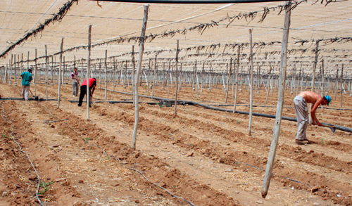 | El sector agrícola del Archipiélago sobrevive en gran medida gracias a las ayudas de la Administración, aunque en muchas ocasiones éstas no son suficientes para que una explotación sea rentable. En la imagen siembra del tomate en invernaderos. Gran Canaria. (MC) |