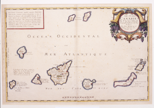 | La historia de la conquista de las siete islas Canarias, de Abreu Galindo, es considerado uno de los documentos etnohistóricos más importantes sobre el Archipiélago. Mapa de P. Du Val de las Islas, fechado en 1653. (MHT) |