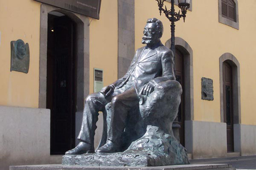 | Estatua dedicada al magnífico poeta y dramaturgo, situada junto al teatro que lleva su nombre en la capital tinerfeña. |