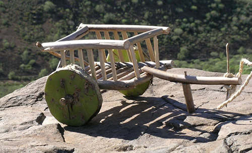 | 11.2. Fueron muchos los objetos que utilizaban los menores en el escaso tiempo libre que tenían, lejos de las duras faenas del campo. Instrumentos de madera, carros de tunera, muñecas de trapo, cometas de tela, etc. Juegos todos ellos, que imitaban las formas de vida y se adaptaban al modelo económico que imperaba. (www.etnoludens.org) |