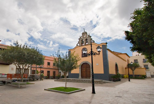 | 1.1. Rodeada de laureles se encuentra la Iglesia de San Antonio Abad ubicada en el casco histórico de Arona. (DM) |