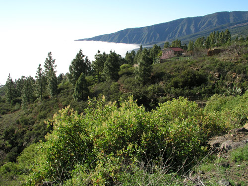 | 4.1. Las peculiaridades del relieve permiten la presencia de un pequeños 'mar de nubes' en el Valle de Güímar, poco común en la vertiente a sotavento de las Islas. (AAF) |