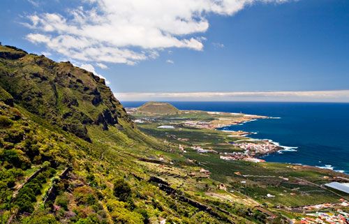 | 3.1. Zona norte del Macizo de Teno, donde se aprecia la Isla Baja y el cono volcánico de la Montaña de Taco. (DM) |