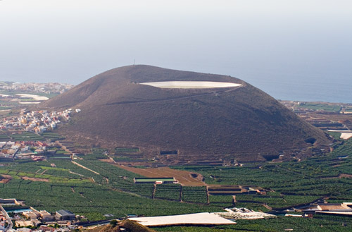 | 4.2. Montaña de Taco, en el límite entre Los Silos y Buenavista del Norte, posee una balsa de agua que se ha construido aprovechando su cráter. (DM) |