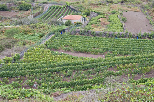 | 12.2. La viña suele ocupar los bancales de las medianías bajas del municipio. Su producción está adscrita a la Denominación de Origen Ycoden-Daute-Isora. (DM) |