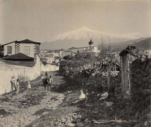 | 12.9. Camino en Icod de los Vinos, al fondo el Teide nevado. (FEDAC) |
