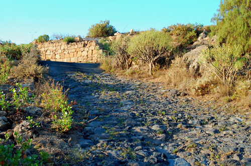 | 12.7. Camino real del sur fue una de las principales vías de comunicación de los pueblos del sur de la isla de Tenerife. En la foto aún se puede observar la calzada de piedra, a su paso por la localidad. (Francisco Fariña) |
