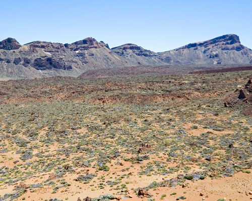 | 3.3. Detalle del circo de las Cañadas, en el Parque Nacional del Teide. A la derecha de la imagen la Montaña de Guajara (DM). |