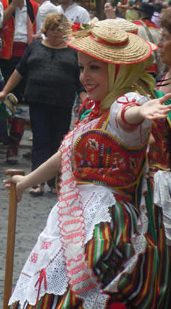 | 11.4. En la mayor�a de las celebraciones, las personas van vestidas con el traje t�pico tanto de La Orotava como del resto de municipios de Tenerife o Canarias. (JT) |