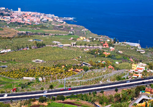 | 2.2. La extensión del Puerto de la Cruz queda ceñida a una pequeña franja litoral, ocupando 8,73 kilómetros cuadrados de superficie. La ciudad se encuentra franqueada por el verde manto de plataneras del Valle de La Orotava. (DM) |