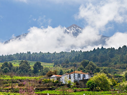 | 5.1. Parte de la zona alta del municipio está inmersa en el Parque Nacional del Teide, monumento de la naturaleza con el que los sanjuaneros se sienten especialmente vinculados. En la imagen, El Teide y parte del pinar de la Corona Forestal visto desde las medianías del municipio. (DM) |