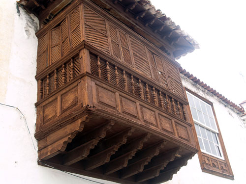| 11.1. Elementos de gran valor artesanal como este balcón de celosía de la Casa de los Oramas Saá se pueden observar en el casco histórico de la Villa de San Juan de la Rambla. (DL) |