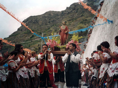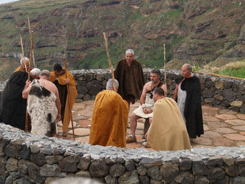 | 11.6. Imagen de la representación de El Beñesmen. Ceremonia que practicaban los guanches para dar gracias a los dioses por la cosecha. (ASJR) |