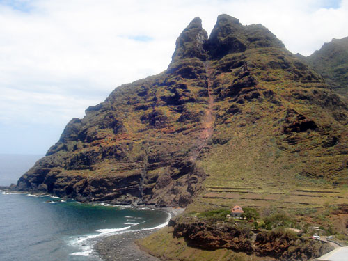 Ya en el camino, el paisaje de matorral y el de costa que aparece al llegar a fondo del barranco, contrasta enormemente con la existencia de viñas plantadas en terrazas y que muestran, lo laborioso de su realización y cuidado, así como las obras de infraestructuras agrarias que realizaron nuestros antepasados. El sendero aprovecha en su segunda parte, el cauce del barranco para con un suave descenso aproximarnos poco a poco hasta la Punta del Hidalgo, concretamente a los pies del Roque de los Dos Hermanos, y su impresionante estampa. Por último, se debe ascender un poco por la pista que aparece a la izquierda llegando a una rotonda, en donde se puede coger la guagua de regreso.