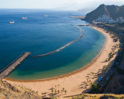 Playa de Las Teresitas. Es la playa más popular de Santa Cruz. Originalmente la playa era de color negro y fue acondicionada y ampliada en 1973 con arena traída, nada más y nada menos que del desierto del Sahara. Tiene 1,5 kilómetros y un rompeolas artificial que cubre la marea alta, protege la playa del oleaje y las corrientes, siendo una playa óptima para el disfrute del mar en todas las edades.