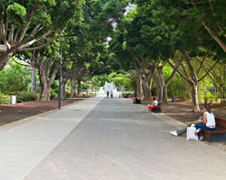 - Parque García Sanabria El parque ocupa 55.000 metros cuadrados. Sujeto a varios proyectos en su inicio, fue diseñado a principios del siglo XX. El Parque constituye sin duda, un auténtico jardín botánico que cuenta con más de 200 especies vegetales llegadas de varios países del mundo. El Parque cuenta además de paseos, fuentes, estanques, zonas ideadas para el disfrute de los niños, monumentos y esculturas de gran interés. Los lugares más significativos y populares de maravilloso recinto son el reloj de Flores, la Fuente Central, el singular y florecido Paseo de las Pérgolas, el Estanque, el Paseo de los Bambúes y el árbol Tamarindo, el ejemplar arbóreo más antiguo del Parque, el cual existía antes de que los jardineros plantasen los primeros árboles.