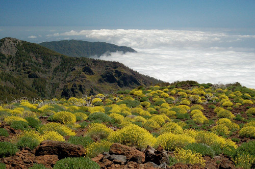 Después de sobrepasar el límite del pinar, el paisaje vegetal queda dominado por una rica flora endémica, entre las que podemos citar la retama de cumbre (Spartocytision nubigeni), la retama del Teide (Spartocytisus supranubius), la hierba pajonera (Descurainia bourgeauana), el alhelí del Teide (Erysimum scoparium), la chajorra o chahorra (Sideritis oroteneriffae), la magarza de cumbre (Argyranthemum teneriffae), el rosalito de cumbre (Pterocephalus dumetorum), el cardo de cumbre (Carlina xeranthemoides) y la crespa o pinillo blanco (Plantago webbii).