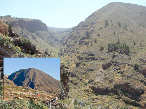 | 3.1. Profundo barranco del Niágara o del Fraile ubicado en la zona meridional de la localidad. A la izquierda el Monumento Natural de Montaña Tejina, domo volcánico donde se han encontrado importantes restos arqueológico. (SG) |